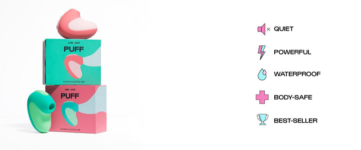Featuring Puff suction vibe and Jolt stimulating gel